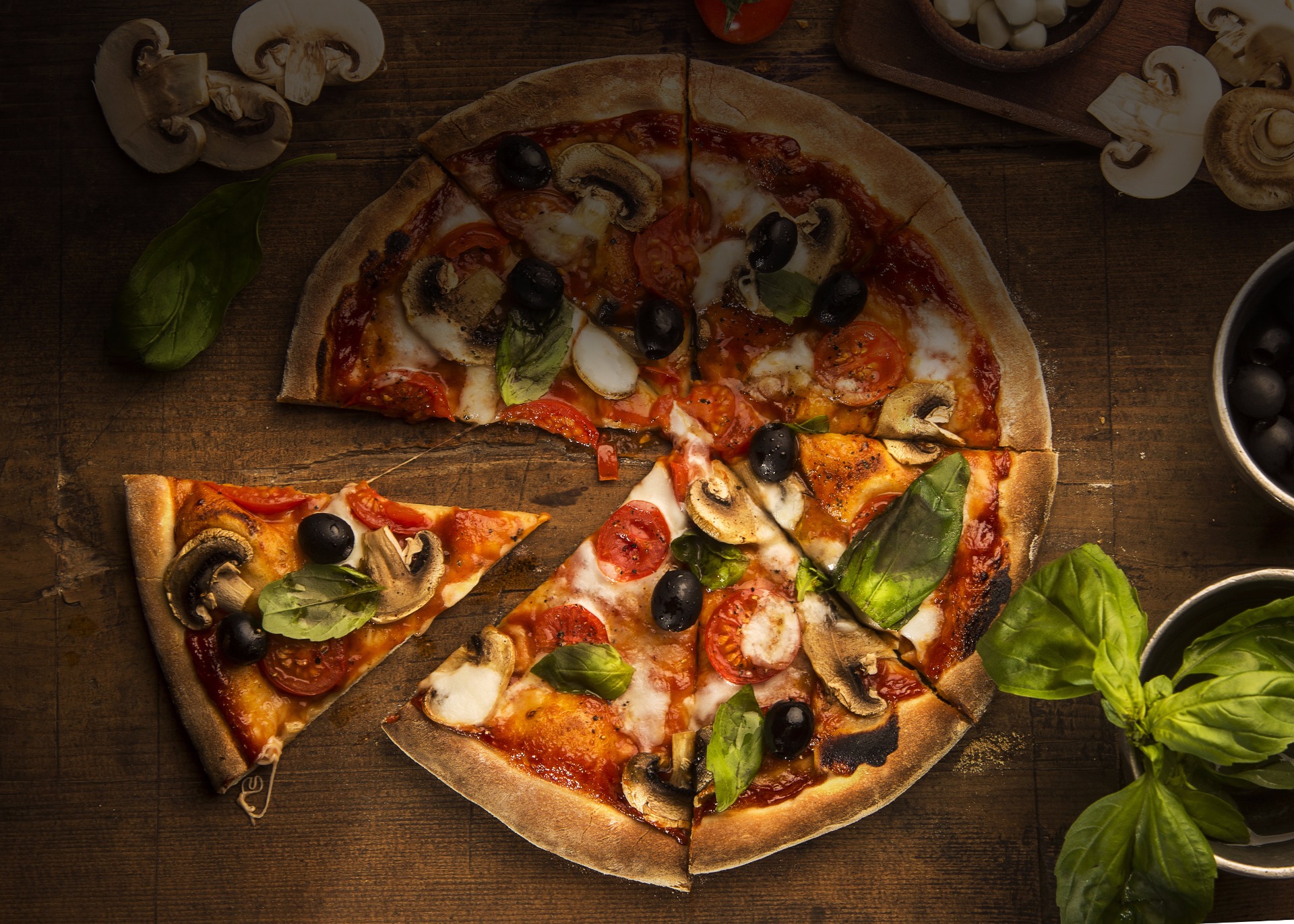 Φρέσκια σάλτσα ντομάτας,τυρί γκούντα,μοτσαρέλα,ζαμπόν,μπέικον,λουκάνικο χωριάτικο,πιπεριά,φρέσκα μανιτάρια